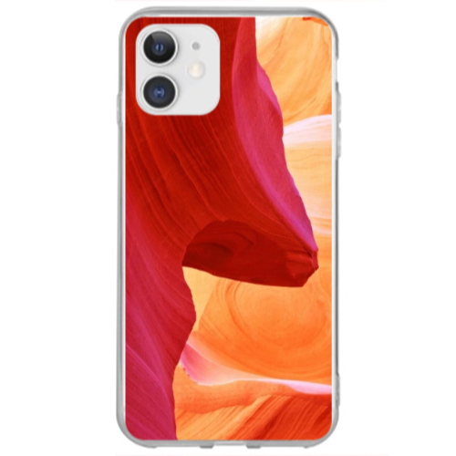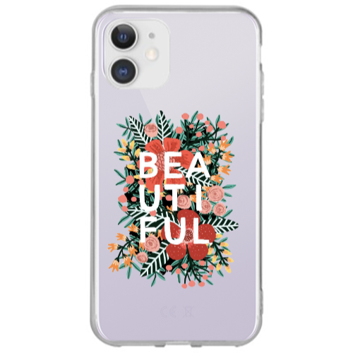 Apple iPhone 12 Kırmızı Çiçek2 Pembe Renkli Silikon Telefon Kılıfı