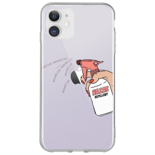 Apple iPhone 12 Nazar Spray Pembe Renkli Silikon Telefon Kılıfı