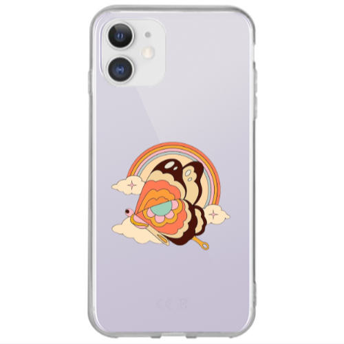 Apple iPhone 12 Karışık Kelebek Lila Renkli Silikon Telefon Kılıfı