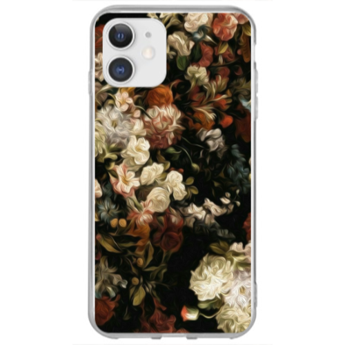 Apple iPhone 12 Karışık Çiçek Siyah Renkli Silikon Telefon Kılıfı