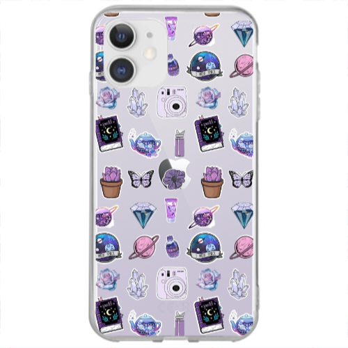 Apple iPhone 12 Mor Nesneler Kırmızı Renkli Silikon Telefon Kılıfı