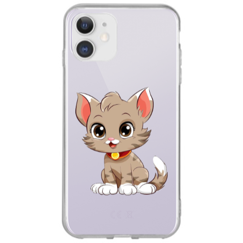 Apple iPhone 12 Kahve Kedi Kırmızı Renkli Silikon Telefon Kılıfı