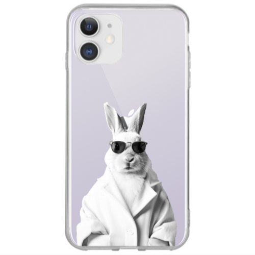 Apple iPhone 12 Tavşan Bey Pembe Renkli Silikon Telefon Kılıfı
