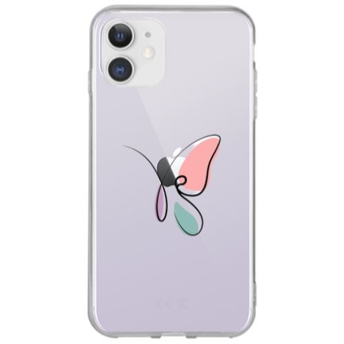 Apple iPhone 12 Kelebek Line2 Siyah Renkli Silikon Telefon Kılıfı