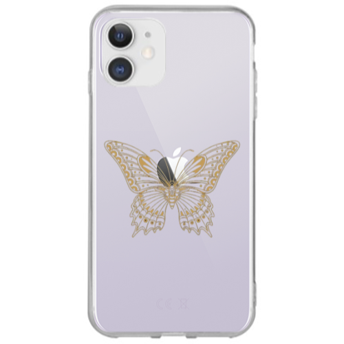 Apple iPhone 12 Şeffaf Kelebek Black Glossy Telefon Kılıfı