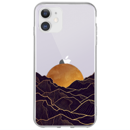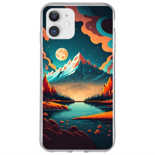 Apple iPhone 12 Siyah Dağ3 Kırmızı Renkli Silikon Telefon Kılıfı