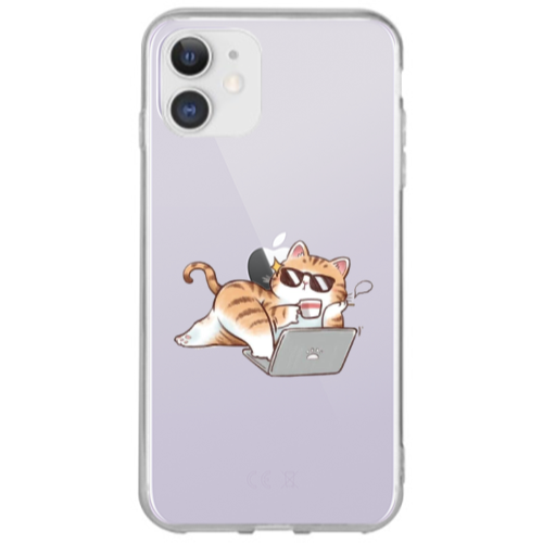 Apple iPhone 12 Laptop Kedi Gri Hux Telefon Kılıfı