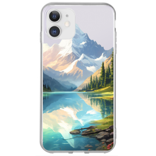 Apple iPhone 12 Açık Yeşil Dağ Koyu Yeşil Renkli Silikon Telefon Kılıfı