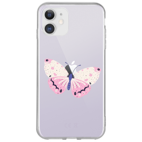 Apple iPhone 12 Pembe Kelebek Black Glossy Telefon Kılıfı
