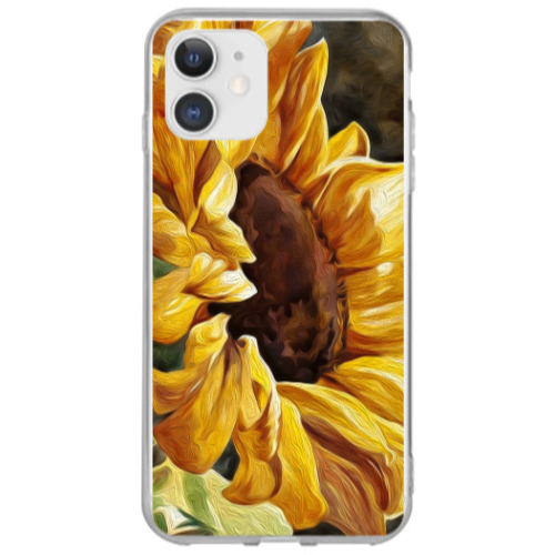 Apple iPhone 12 Büyük Ayçiçeği Black Glossy Telefon Kılıfı