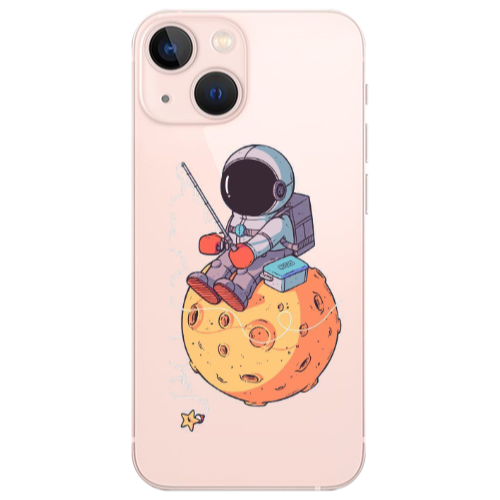 Apple iPhone 13 Astronot Ay Krem Renkli Silikon Telefon Kılıfı