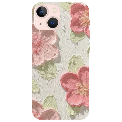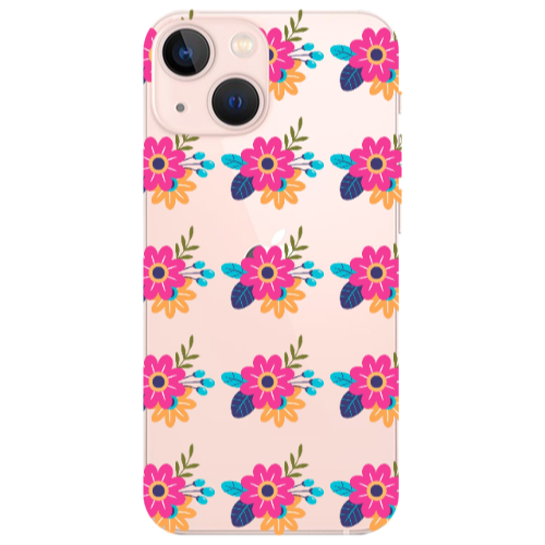 Apple iPhone 13 Pembe Çiçek Kırmızı Renkli Silikon Telefon Kılıfı