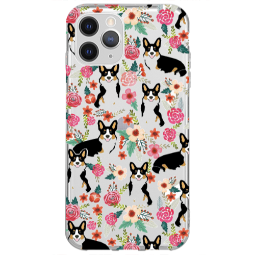 Apple iPhone 13 Pro Max Köpek Çiçekler Lila Renkli Silikon Telefon Kılıfı