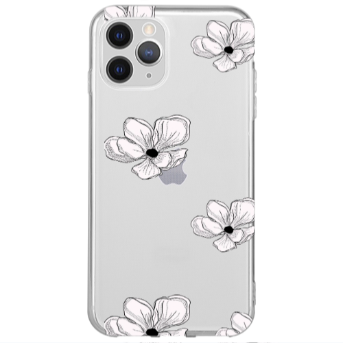 Apple iPhone 13 Pro Max Çiçekler 2 Beyaz Renkli Silikon Telefon Kılıfı