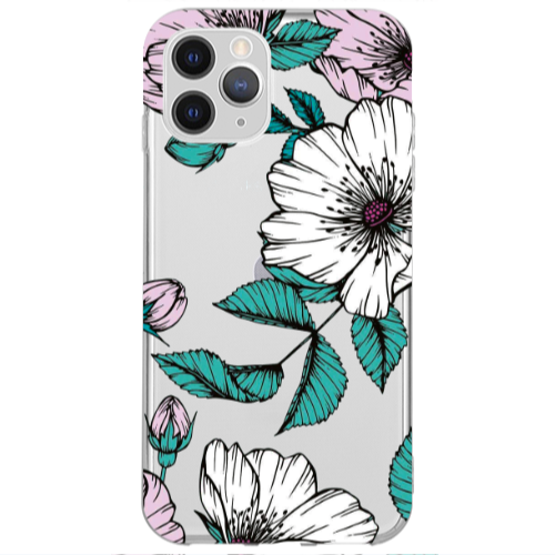Apple iPhone 13 Pro Max Beyaz Mor Çiçek Lila Hux Telefon Kılıfı