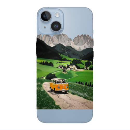 Apple iPhone 14 Siyah Dağ2 Açık Yeşil Renkli Silikon Telefon Kılıfı