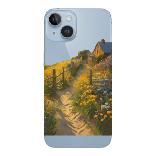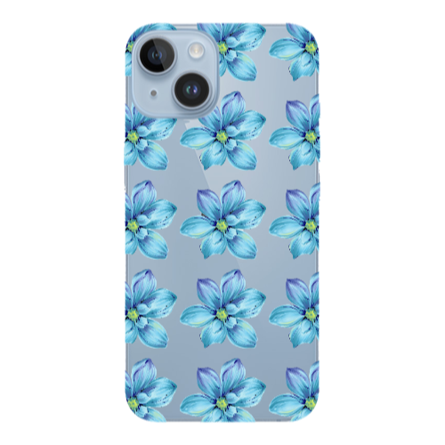 Apple iPhone 14 Mavi Sanat Çiçek Sarı Renkli Silikon Telefon Kılıfı