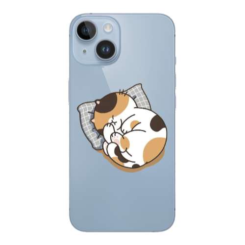 Apple iPhone 14 Plus Uykucu Kedi Pembe Renkli Silikon Telefon Kılıfı