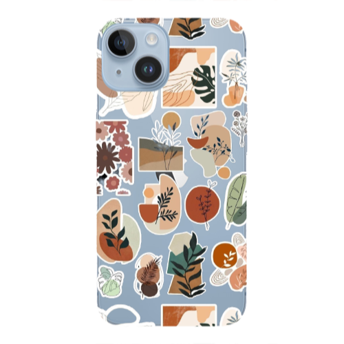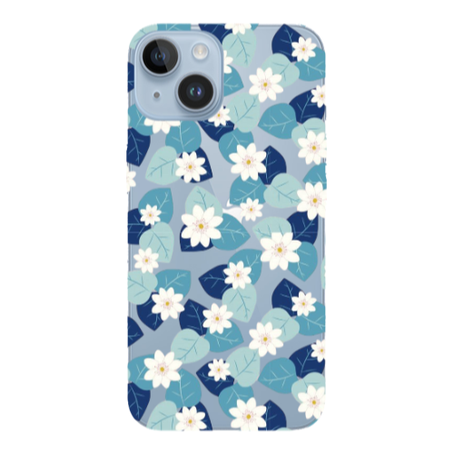 Apple iPhone 14 Plus Mavi Çiçek Kırmızı Renkli Silikon Telefon Kılıfı