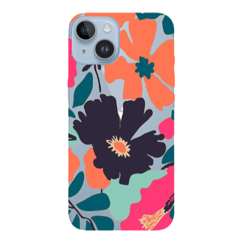 Apple iPhone 14 Plus Büyük Çiçek Lila Renkli Silikon Telefon Kılıfı