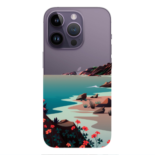 Apple iPhone 14 Pro Pembe Dağ2 Beyaz Renkli Silikon Telefon Kılıfı