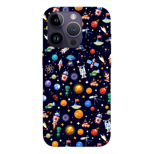 Apple iPhone 14 Pro Vektörel Gezegenler Kırmızı Hux Telefon Kılıfı