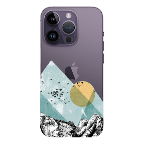 Apple iPhone 14 Pro Dağlar Ay Krem Renkli Silikon Telefon Kılıfı