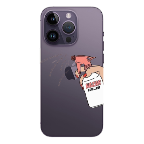 Apple iPhone 14 Pro Nazar Spray Lila Renkli Silikon Telefon Kılıfı