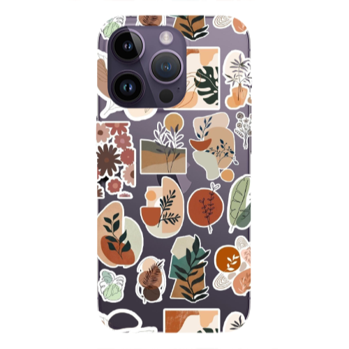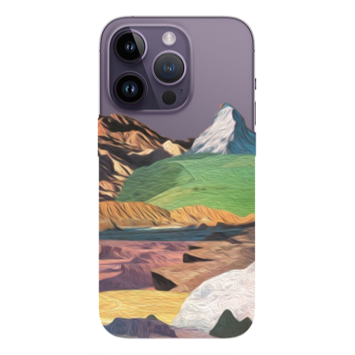 Apple iPhone 14 Pro Kahve Dağ Lila Renkli Silikon Telefon Kılıfı