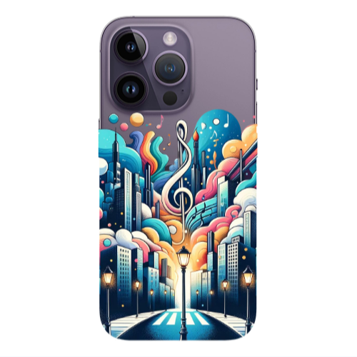Apple iPhone 14 Pro Max Müzik Sokağı Beyaz Renkli Silikon Telefon Kılıfı