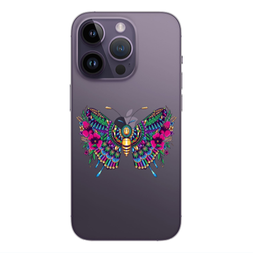 Apple iPhone 14 Pro Max Mandala Kelebek Beyaz Renkli Silikon Telefon Kılıfı