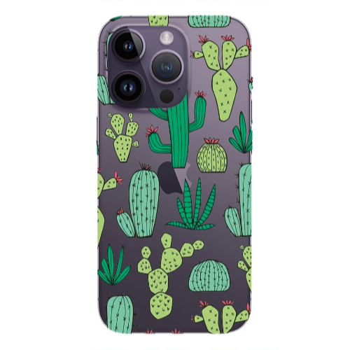 Apple iPhone 14 Pro Max Kaktüsler Transparent Şeffaf Telefon Kılıfı