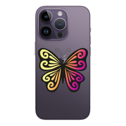 Apple iPhone 14 Pro Max Rengarenk Kelebek2 Pembe Hux Telefon Kılıfı