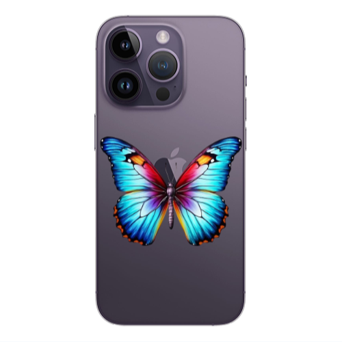 Apple iPhone 14 Pro Max Mavi Kelebek Sarı Renkli Silikon Telefon Kılıfı