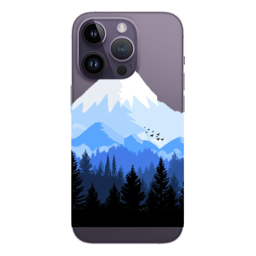Apple iPhone 14 Pro Max Sulu Mavi Pembe Renkli Silikon Telefon Kılıfı