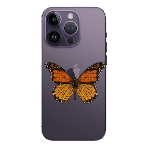 Apple iPhone 14 Pro Max Kahve Kelebek Kırmızı Renkli Silikon Telefon Kılıfı