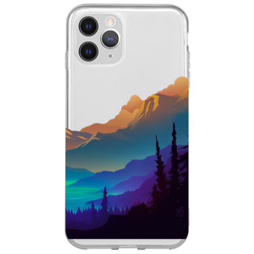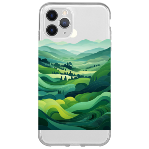 Apple iPhone 13 Pro Mavi Dağ2 Açık Yeşil Renkli Silikon Telefon Kılıfı
