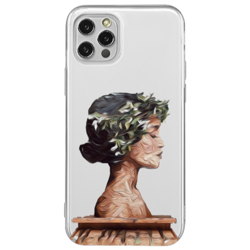 Apple iPhone 12 Pro Yaprak Kadın Siyah Renkli Silikon Telefon Kılıfı