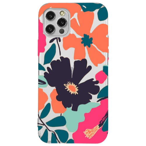 Apple iPhone 12 Pro Büyük Çiçek Siyah Hux Telefon Kılıfı