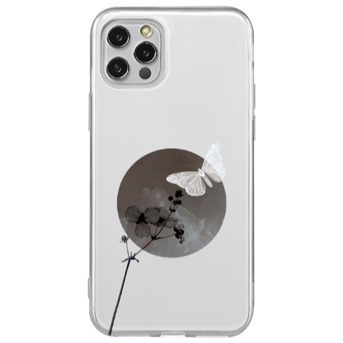 Apple iPhone 12 Pro Çiçek Kelebek Siyah Hux Telefon Kılıfı