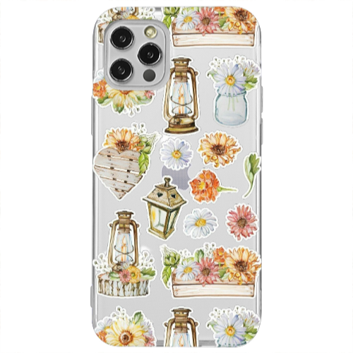 Apple iPhone 12 Pro Açık Çiçek2 Siyah Renkli Silikon Telefon Kılıfı