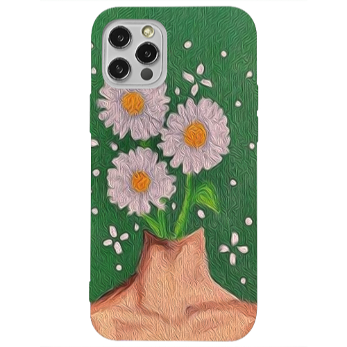 Apple iPhone 12 Pro Çiçek 5 Koyu Yeşil Renkli Silikon Telefon Kılıfı