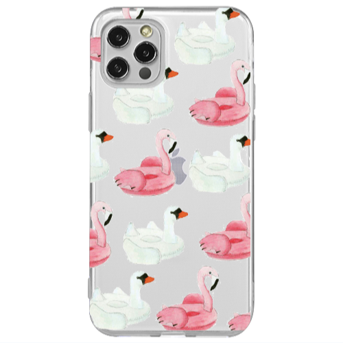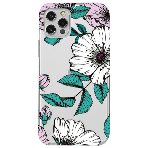 Apple iPhone 12 Pro Beyaz Mor Çiçek Açık Yeşil Renkli Silikon Telefon Kılıfı