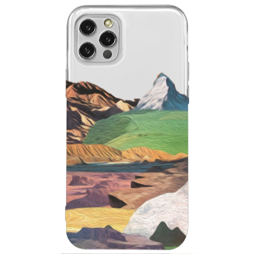 Apple iPhone 12 Pro Kahve Dağ Lila Renkli Silikon Telefon Kılıfı