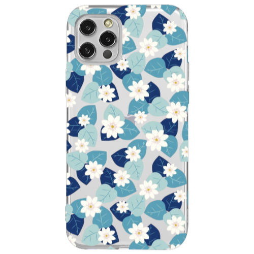 Apple iPhone 12 Pro Mavi Çiçek Lila Renkli Silikon Telefon Kılıfı