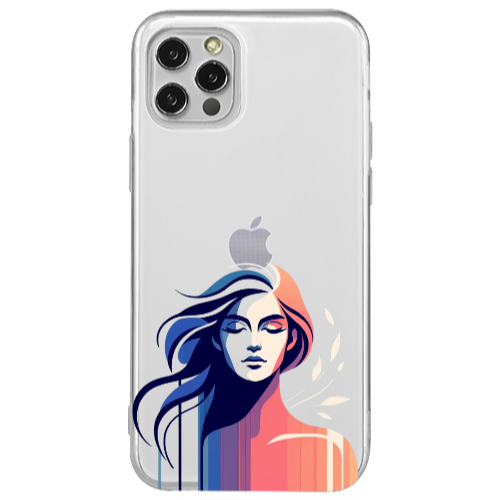 Apple iPhone 12 Pro Çiçek alan kadın Açık Yeşil Renkli Silikon Telefon Kılıfı