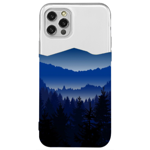 Apple iPhone 12 Pro Mavi Dağ Açık Yeşil Renkli Silikon Telefon Kılıfı