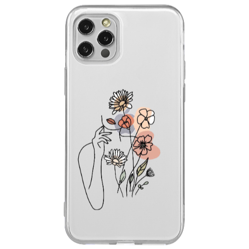 Apple iPhone 12 Pro Kadın Çiçek 2 Kırmızı Renkli Silikon Telefon Kılıfı