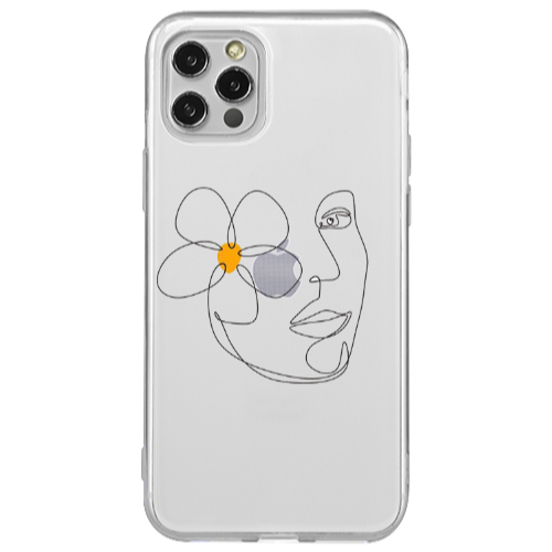 Apple iPhone 12 Pro Çiçek Line Kadın Açık Yeşil Renkli Silikon Telefon Kılıfı