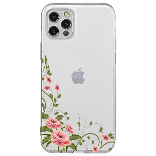Apple iPhone 12 Pro Köşe Çiçeği Transparent Şeffaf Telefon Kılıfı